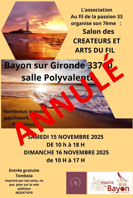 Nous sommes sincèrement désolées et nous vous présentons toutes nos excuses pour l’annulation du salon qui était prévu en novembre.